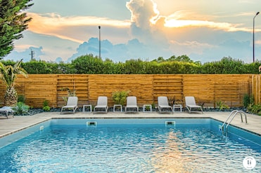 The seasonal outdoor pool at this hotel creates a sun-kissed oasis. Loungers surround the water, perfect for soaking up rays and relaxation.
